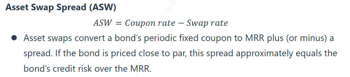 2. 然后关于前半句,The ASW is an estimate of the spread over MRR,是指超过MRR的部分是ASW,也没有问题。因为整体的现金流是MRR + ASW。