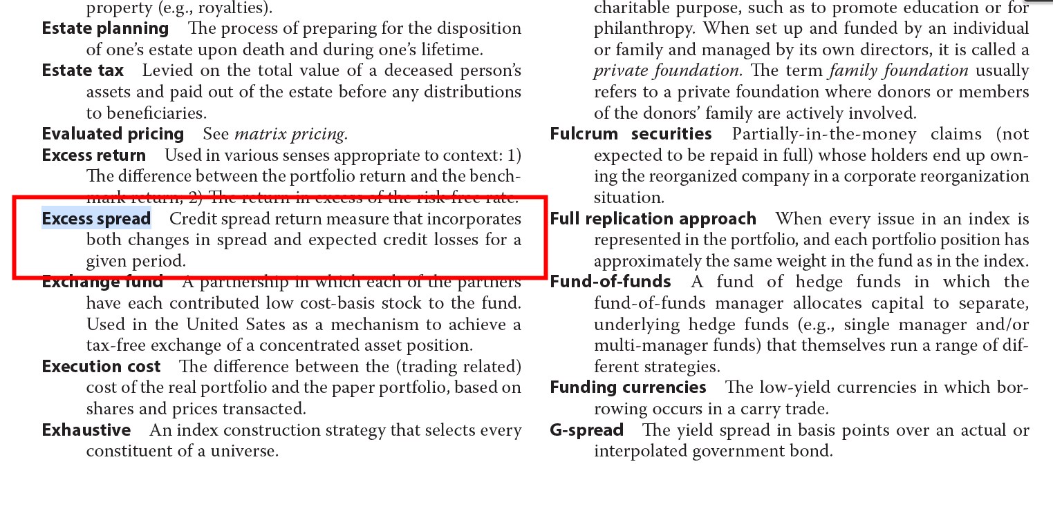 excess spread就是一个spread的return,然后同时考虑了spread的变动和违约的损失。spread是直接给我们的,不用考虑benchmark是什么