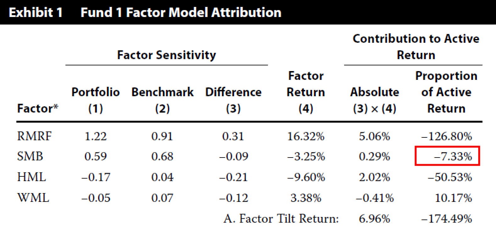 为什么contributed the least to active return为什么不是HML呢,他贡献-50.53%呀
