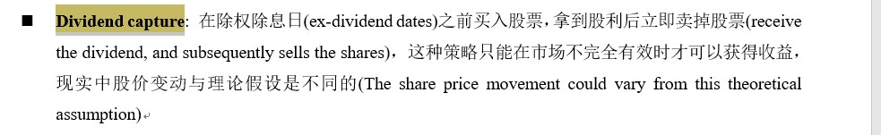 但是dividend capture 是股利到了立马就卖了,covered all 我还有一些空间比如现在30,我35块卖,但dividend 可能付息时候32我就卖了