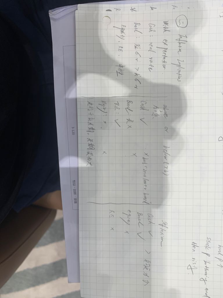 老师,这里inflation环境下持有什么产品有利,判断标准是哪种产品价格能上升吗?利率这里判断上有个很晕的点,比如,股票,在这种contraction环境中,应该是短期利率下降,但是因为市场不稳风