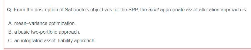 老师,能否解答下这道题目为什么是选C?题目中表述的其中一个目的是最小化投资成本,那integrated asset–liability approach更复杂,应该成本更高,不是应该排除C选A吗?