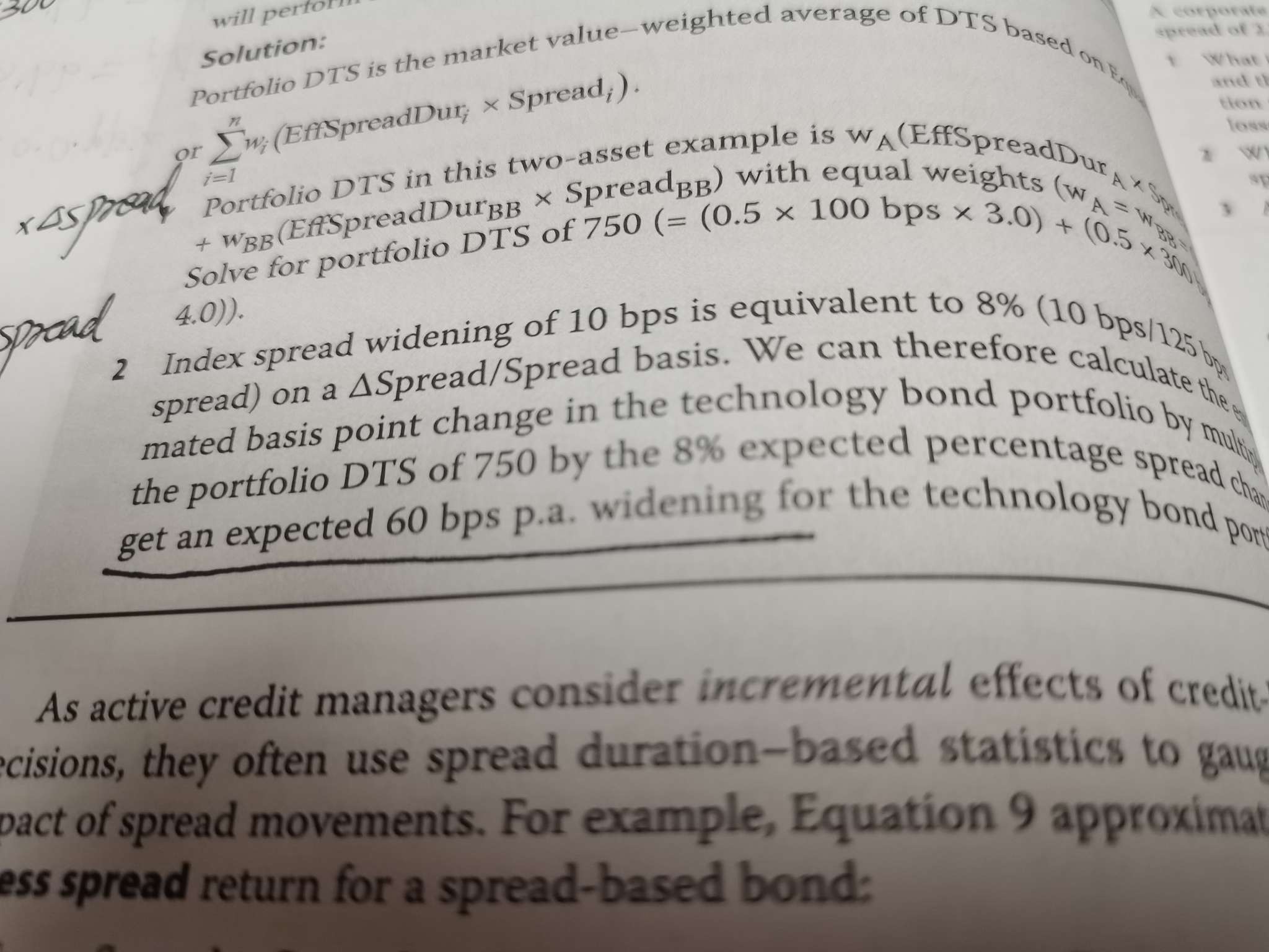 这一题计算是对的,但是这最后一句话没看懂,index的spread变宽0.8%,组合的价值变动应该是DTS乘以0.8%( spread的变动比率),那最后一句话怎么用bps来描述呢?