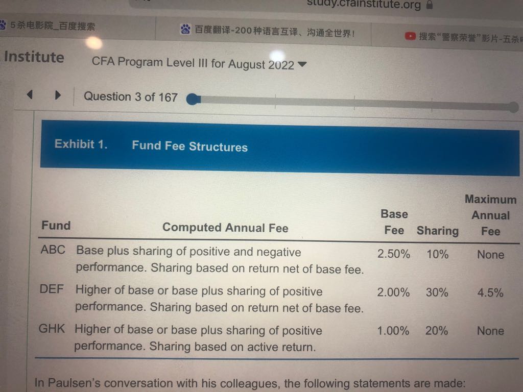 包含CFA三级传统在线课程相关提问答疑;