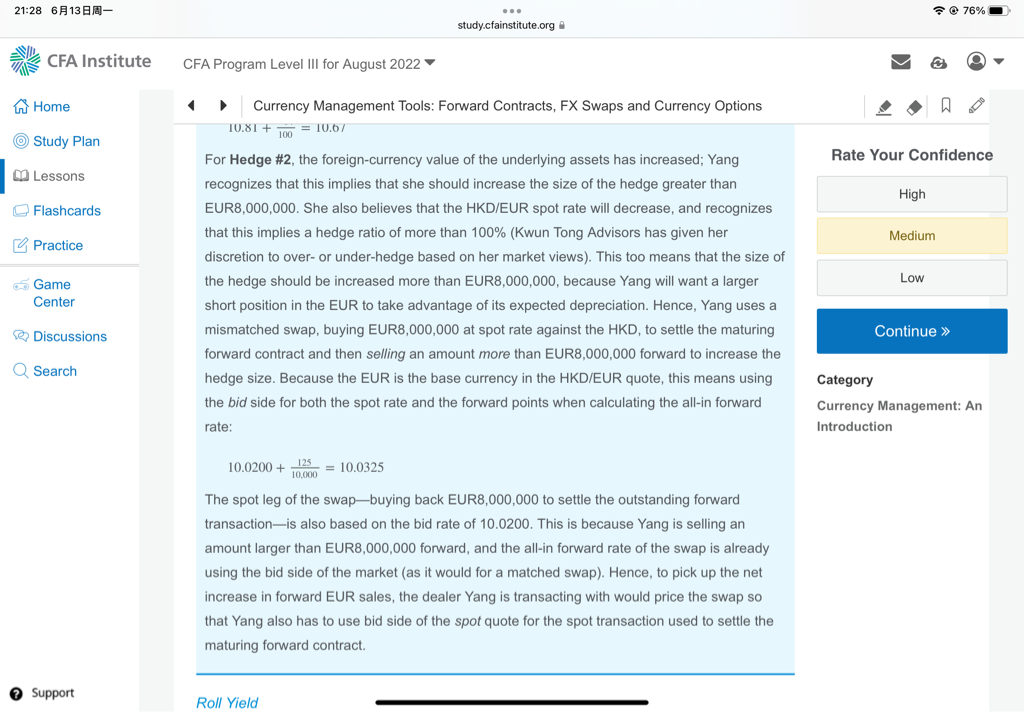 老师好,1.hedge 2 为什么用10.82呢 ,主人公有 空头eur 怕eur 涨 所以 long eur,买eur 用更贵的 所以用10.021个hkd。 2.为什么hedge1用的是 中间作为spot 3. forward point 应该选哪个呢,是不是选对了spot 对应那边的forward point