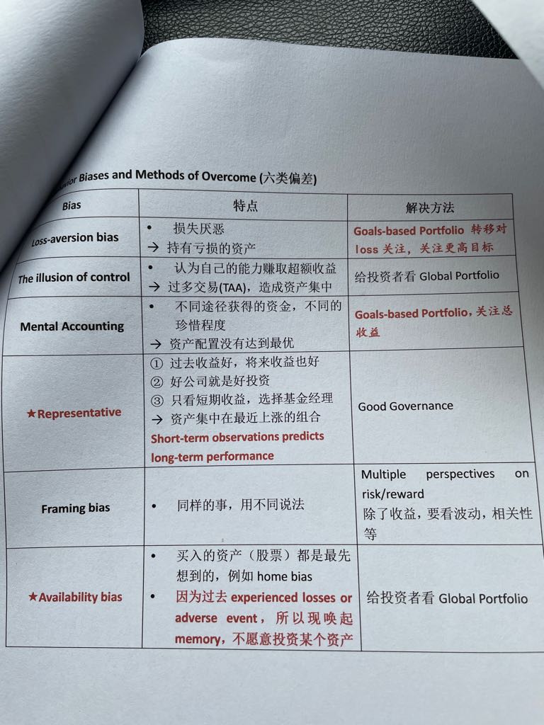 已解决老师,我做课后题碰到过一道简答题,说一个人过去遇到损失,然后不愿意投资这个产品了,是availability bias,于是我就记下了。回头复习behavioral finance,冲刺笔记是把这种情况归为regret- aversion bias,哪个是正确的?