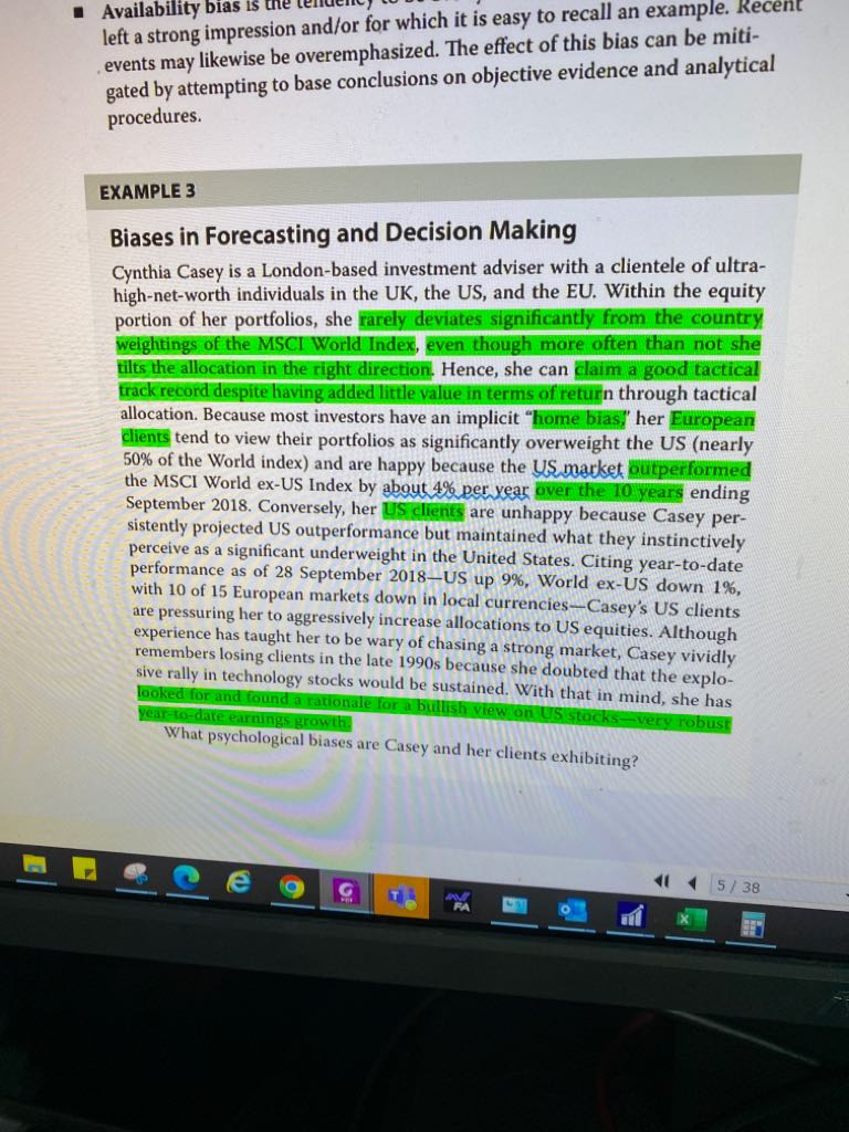 已回答CME 原版书P114 example 3: 1. 请问这个prudence bias是啥? 2. 请问status quo bias为啥能体现在cleaely projecting continuation of the trend?难道不是维持现状不改变吗? 谢谢