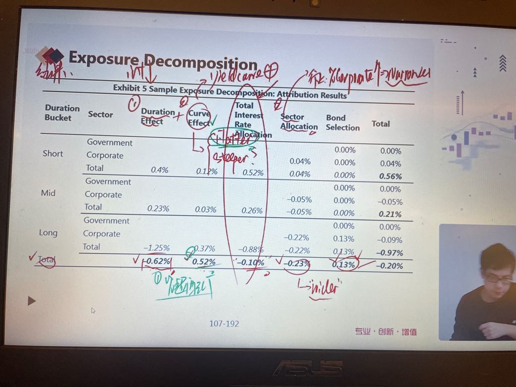 您可以换种提问方式,或由专业老师为您解答。 固收评估中 curve effect会问flatten还是steeper 那利率降的话有没有可能是平移下降的 此时curve effect是正数 但没有变flatter或steeper 就这题来说 我可不可以理解为 因为duration effect是负的 所以表示int整体是上升的 但curve effect代表超配的长短端的收益 所以只有可能是短期利率上升 长期利率下降 而并不可能同时平移下降?