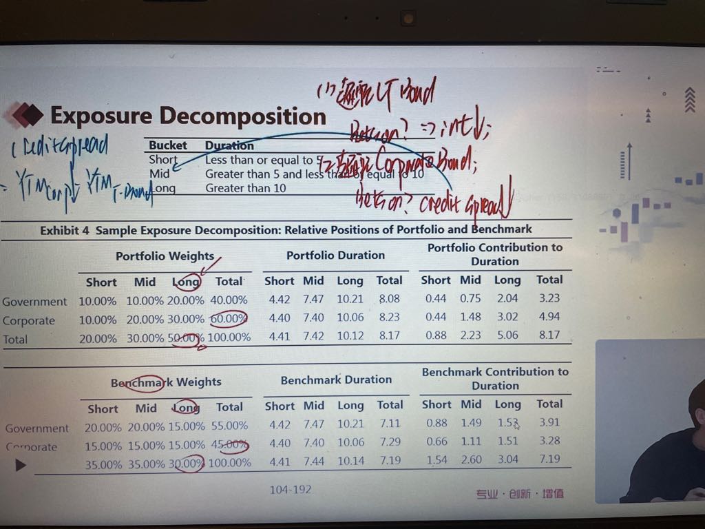 这个例题老师说 manager bets on interest rate goes down and credits spread goes down 这里我有两个问题 第一 他既然觉得利率会跌 那么credit spread是公司债收益率减去国债收益率 他既然觉得国债收益率会跌 spread怎么还能会跌呢? 第二 利率降不是经济不好的体现吗 为什么信用质量还能变好?