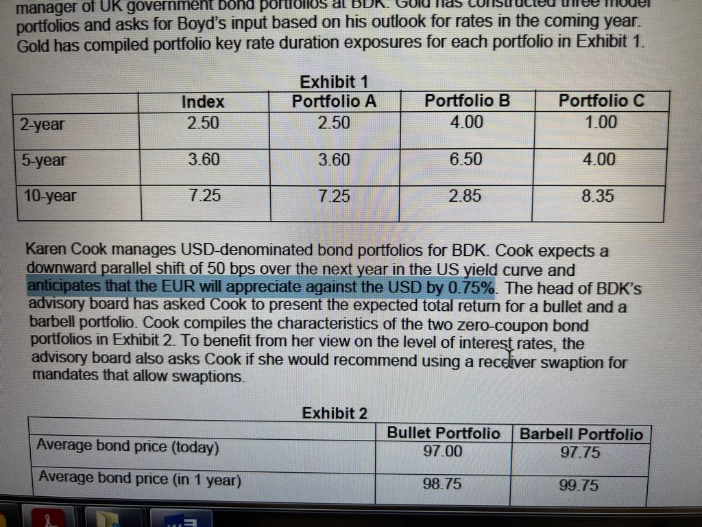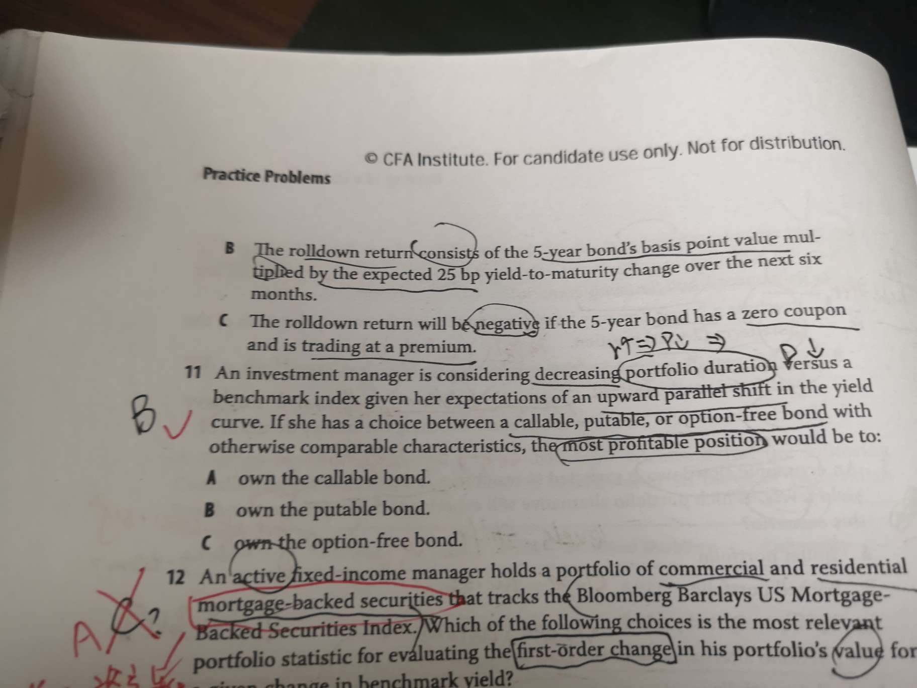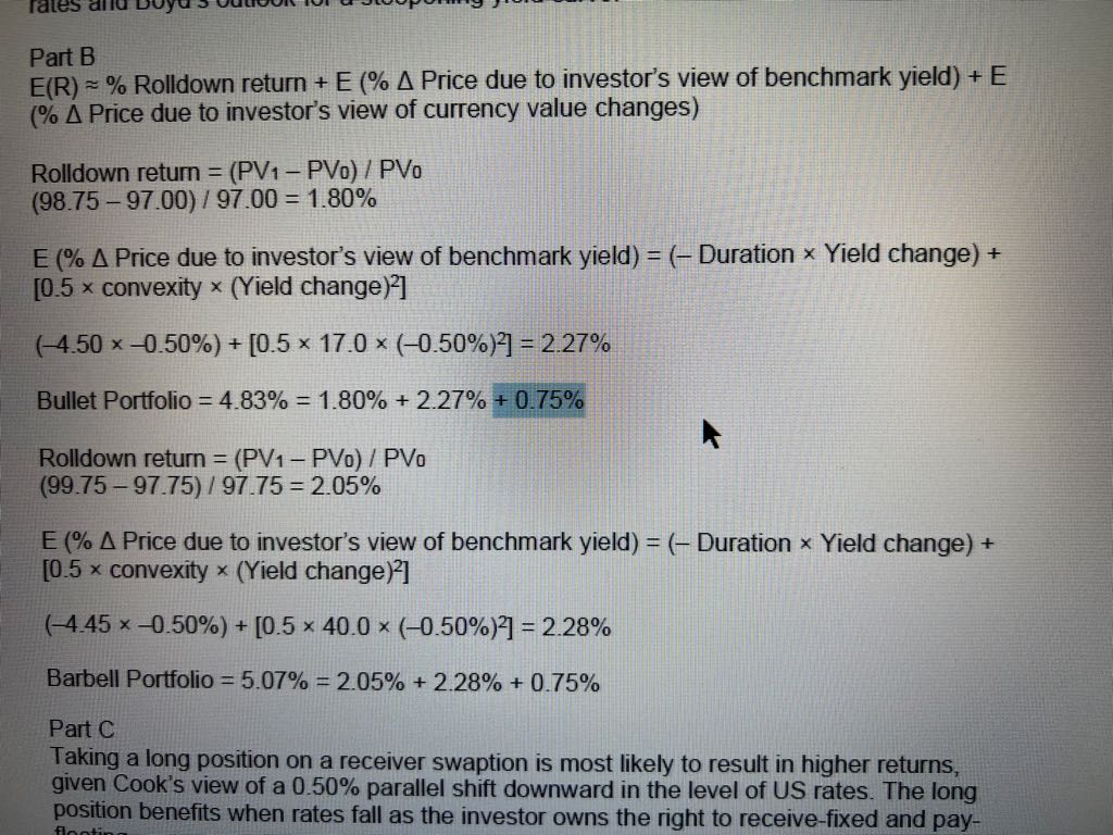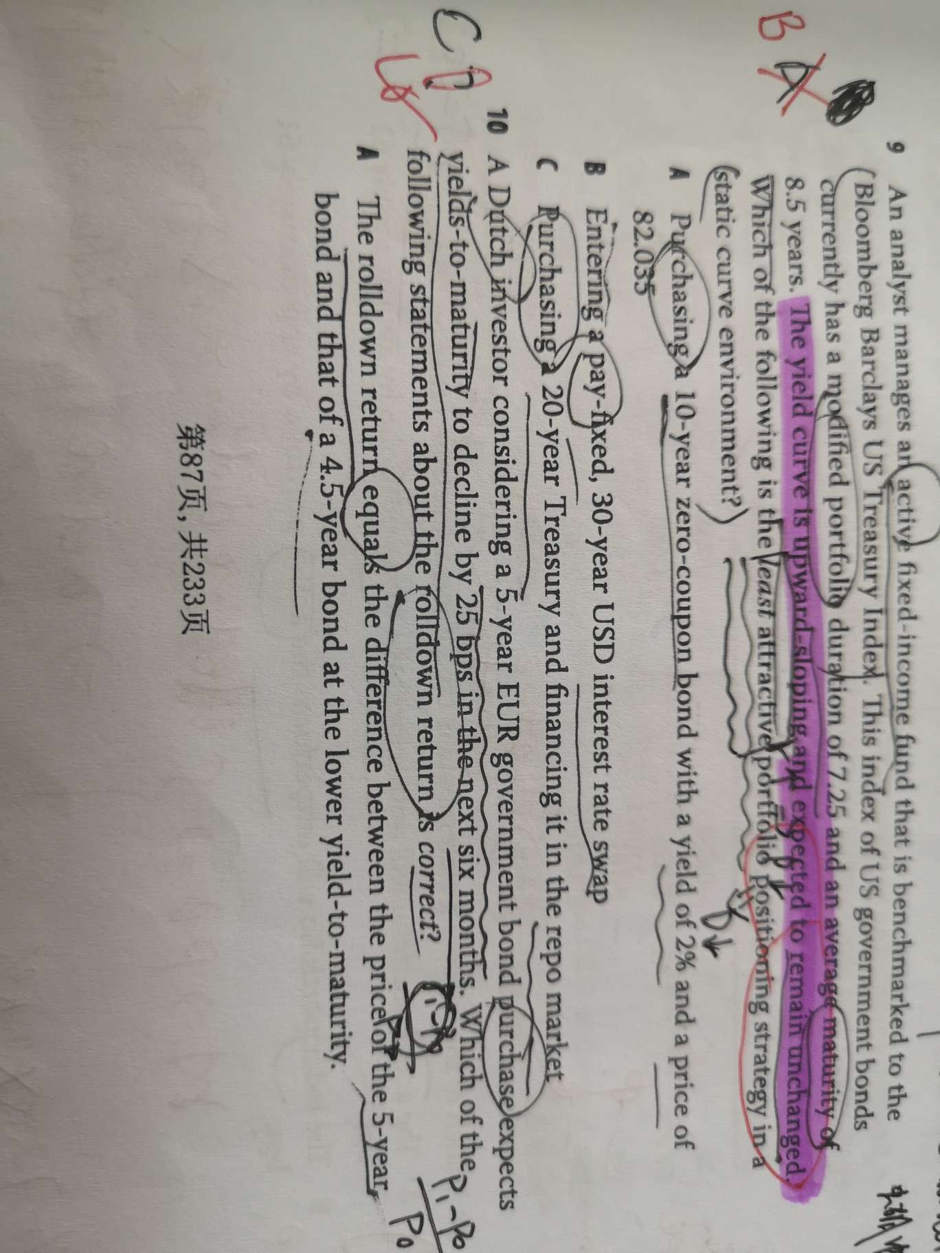 已解决老师,你好,原版书课后题reading 14的第35题,能否解答下这个题目。对于选项C中有提到bullish benchmark yield curve flatting这个情况,说明长期和短期的收益率都是下降,那对应是债券价格上升,好像跟题干中说的reduce the future value of high-yield portfolio并不匹配啊?另外,解释下A和B错在哪里?