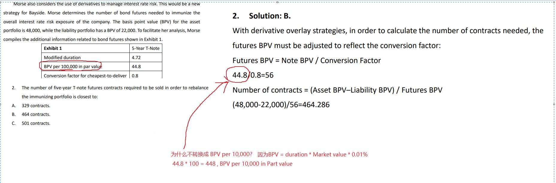 已回答老师您好,这道题给的BPV per 100,000 in par value, 请问为什么不转换成 BPV per 10000 in par value? 我的理解是 BPV of asset , liability per 10,000 in par value。 那么需要转换成同一个级别来算number of contract.