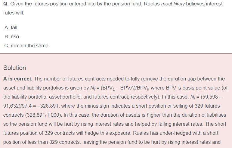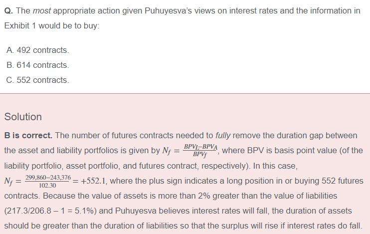 Abiquia Mutual Case 这个overhedge问题 本来552份期货合约就可以达到免疫 也就是无论未来利率怎么变 资产和负债的变动值都是相同的? 对不对? 那overhedge是不是就相当于在免疫达到了之后还想多赚点 因为预计未来利率下跌嘛 所以应该要long bond futures 所以 加起来之后就是会超过552份 同理 如果预计未来利率上升 那应该要short futures 所以最后加起来要少于552份 也就是under-hedge 这样理解对吗?