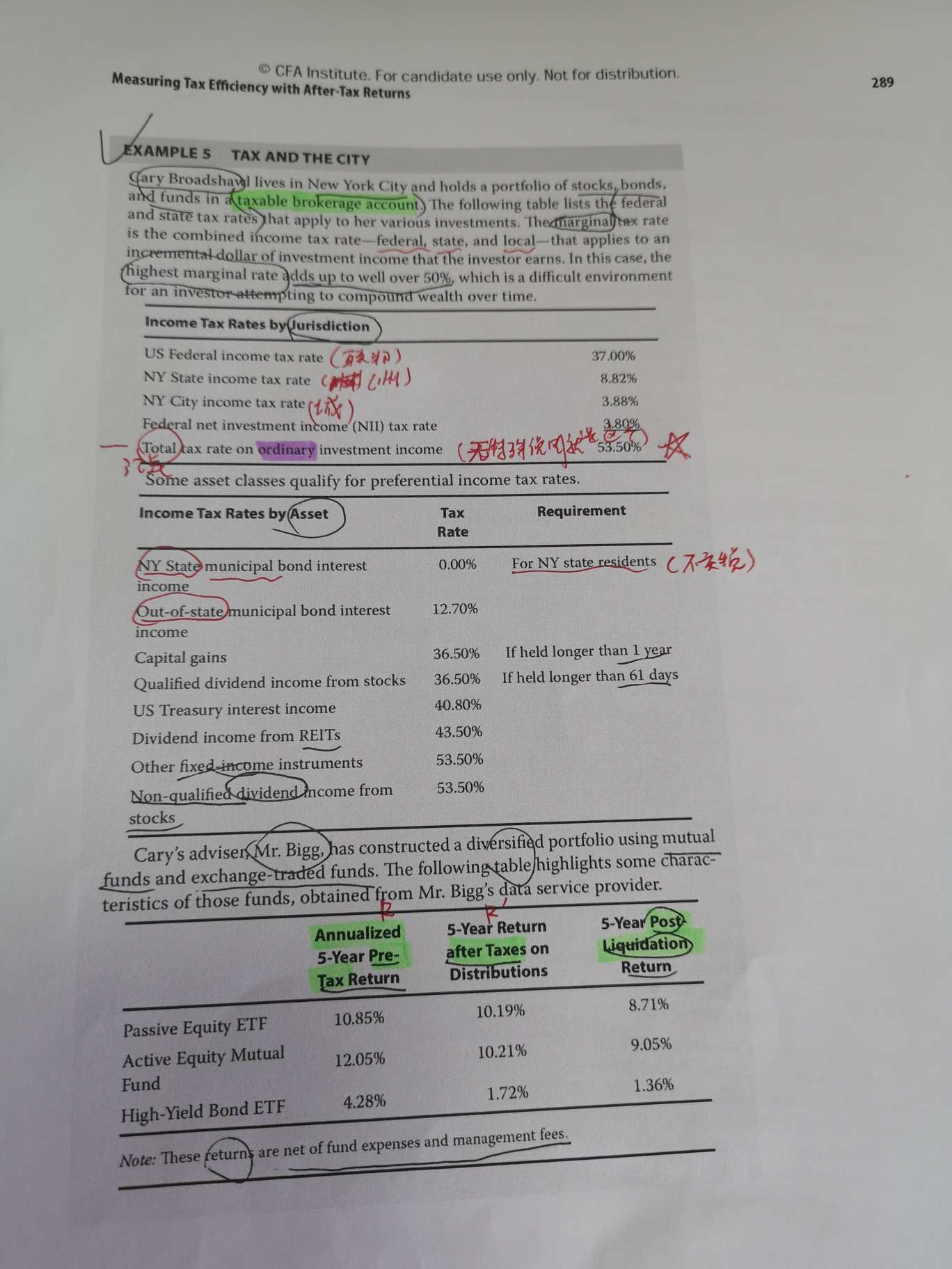 例题289页3小题,在计算dividendtax rate应该是用non qualified div income from stocks的53.5,不是ordinary investment income的53.5%吧?n这个题在写答案也需要计算税前,税后收益吗?因为题目只问了tax是多少