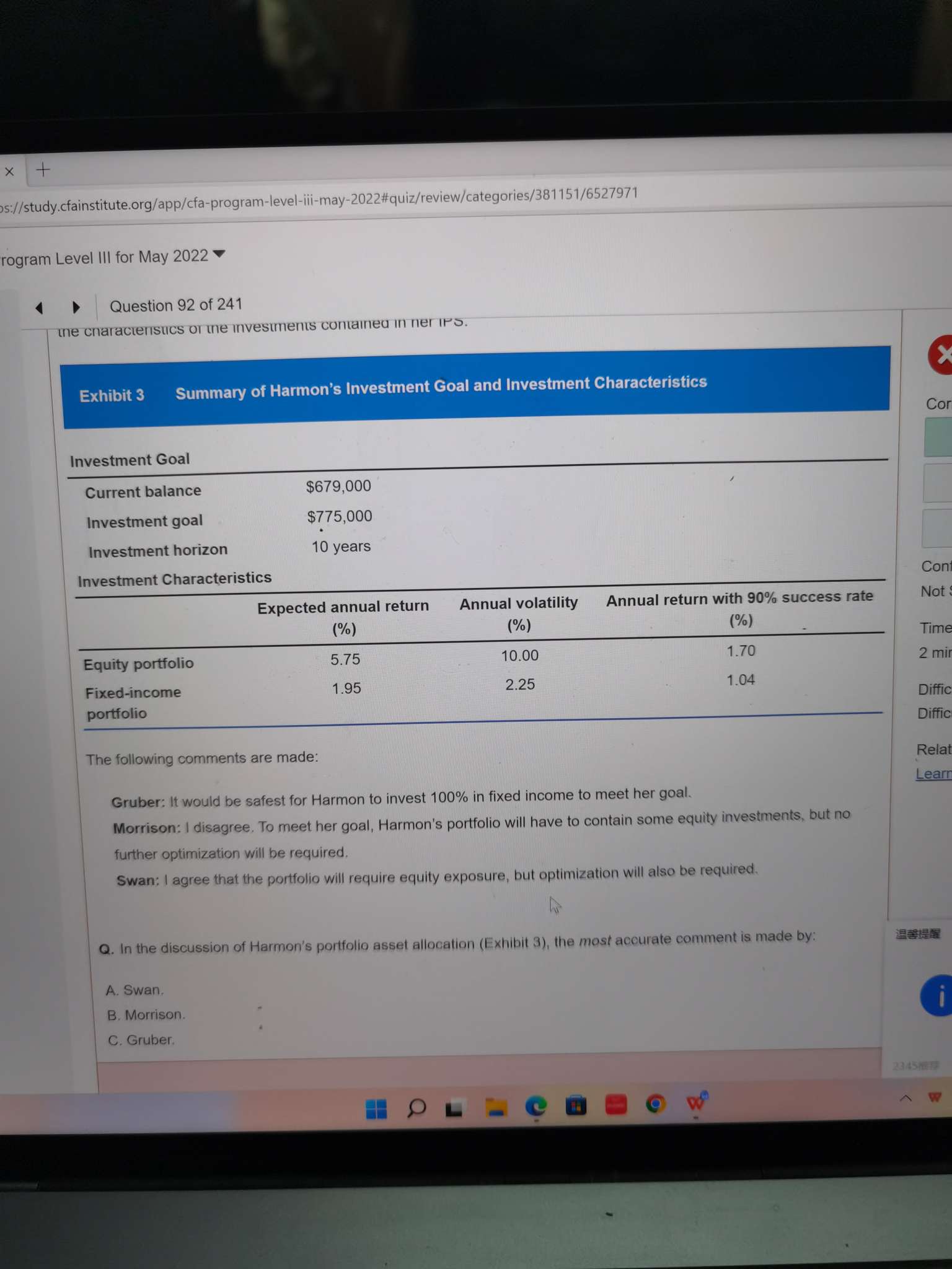 包含CFA三级传统在线课程相关提问答疑;