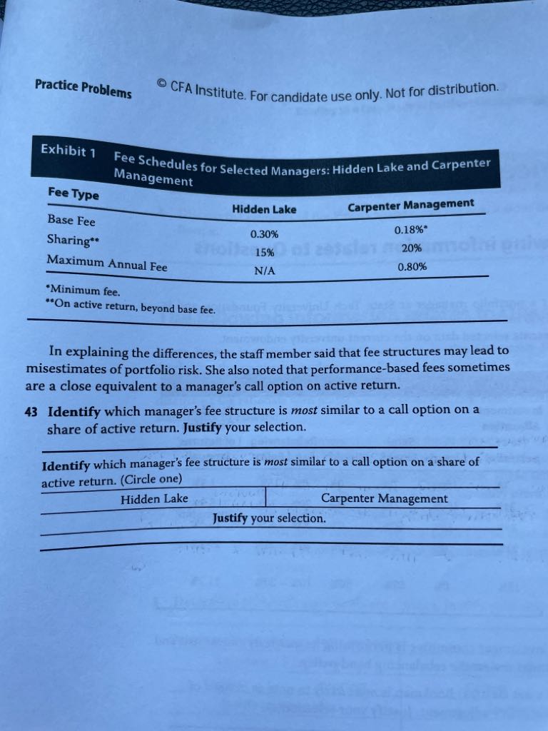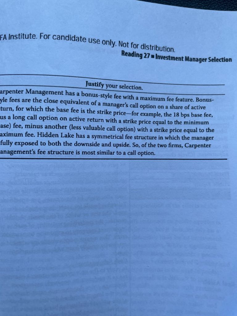 R27 第43题,不是很理解为什么有Max annual fee就说这个fund fee structure exposed to downside和upside?尤其是答案说它像call option这段没理解。