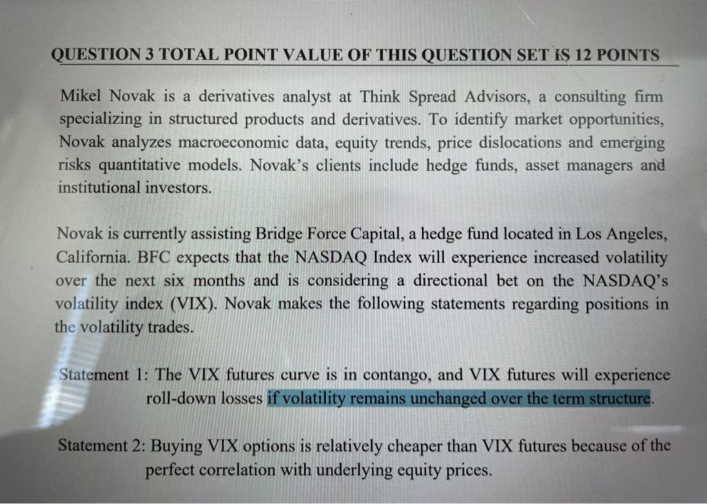已解决请问Mock2上午题question3,材料中提到的BFC expects that the NASDAQ Index will experience increased volatilityover the next six months于statement1中if volatility remains unchanged over the term structure是否矛盾?
