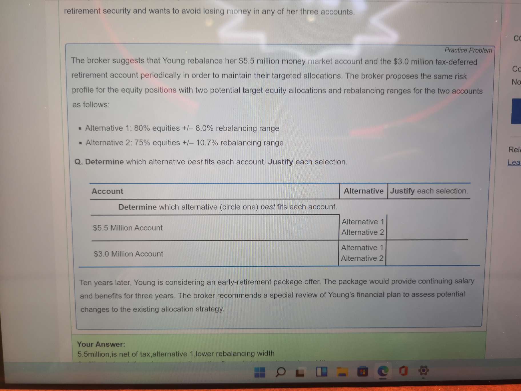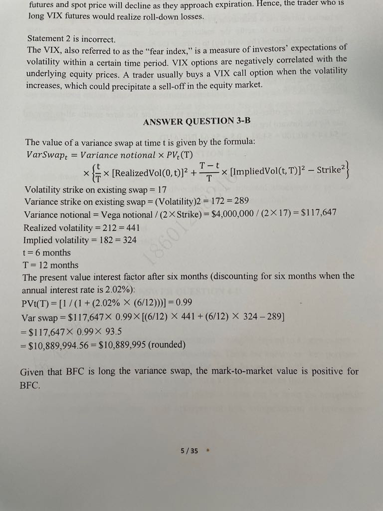 老师,在做Mock2上午题question3-B时,我的答卷如下: expected variance to maturity=382.5 expected payoff=11,000,000 Value of the variance swap=10,890,011 但是答案解析(见图)不仅没有按照步骤计算,而且计算结果由于过程四舍五入的原因,答案最后是10,889,995。 我的第一个问题是:我这道题的答卷能得满分吗? 我的第二个问题是:假如我第三步算错了(但前两步都对),答案解析里都没有按照步骤计算,监考老师也不可能单独检查我的各个步骤啊。这样的话我能得过程分吗?