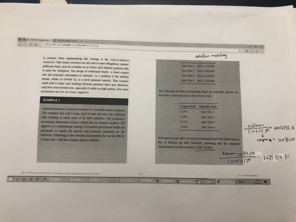 1.R13原版书例题3对于bond 和swap计算的是gain ,如果是计算return ,债券的return 应该是5462778/93947000,那swap return 应该用5364760除以哪个数呢 2.还有一个问题图片中画红线的两个yield ,一个bond yield 一个swap yield 指的是什么呢,不明白