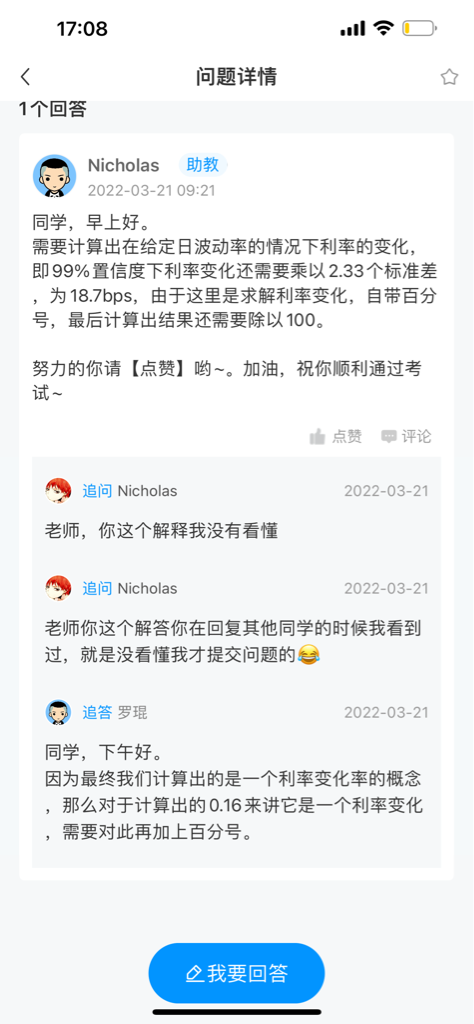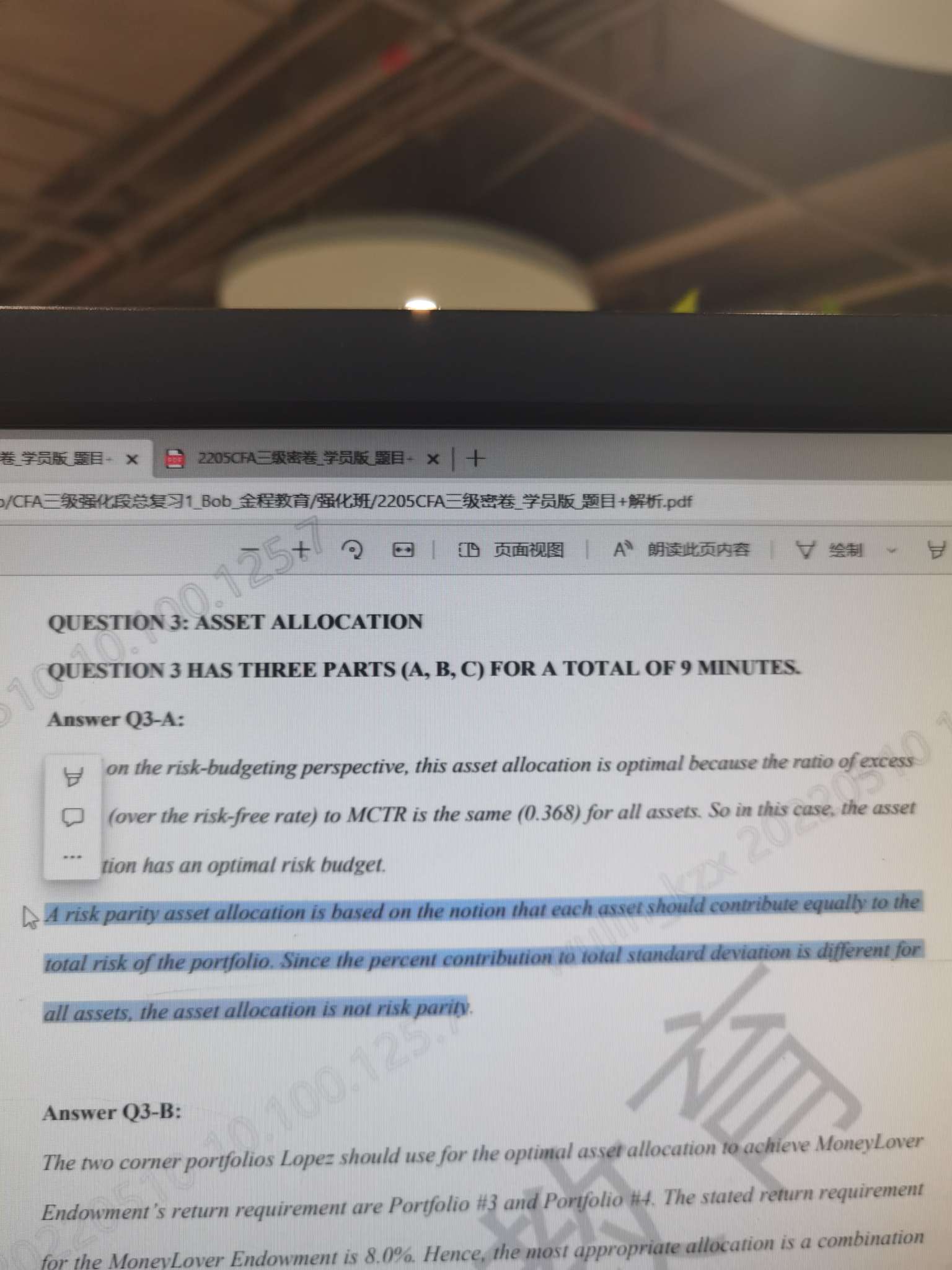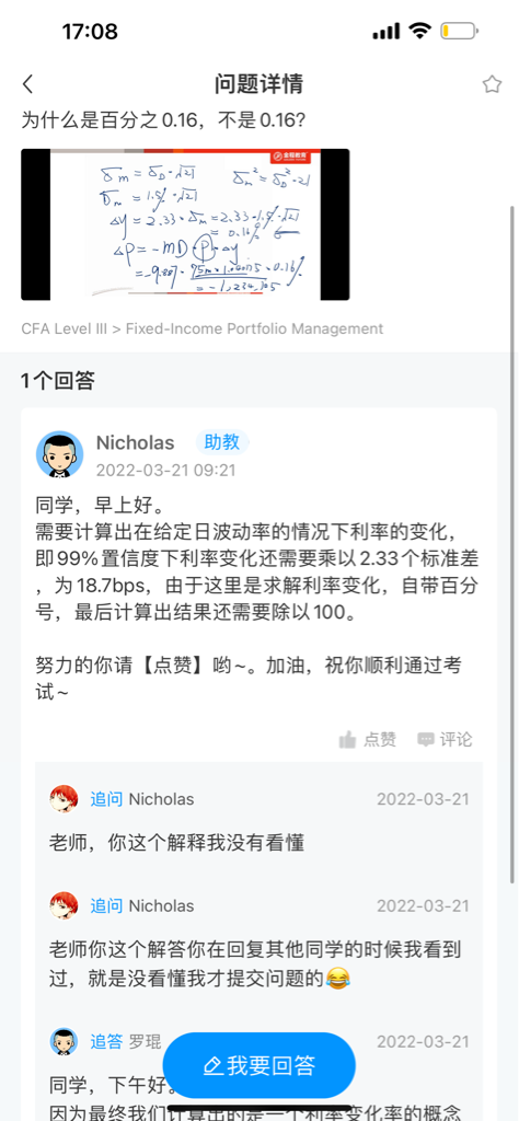 包含CFA三级传统在线课程相关提问答疑;