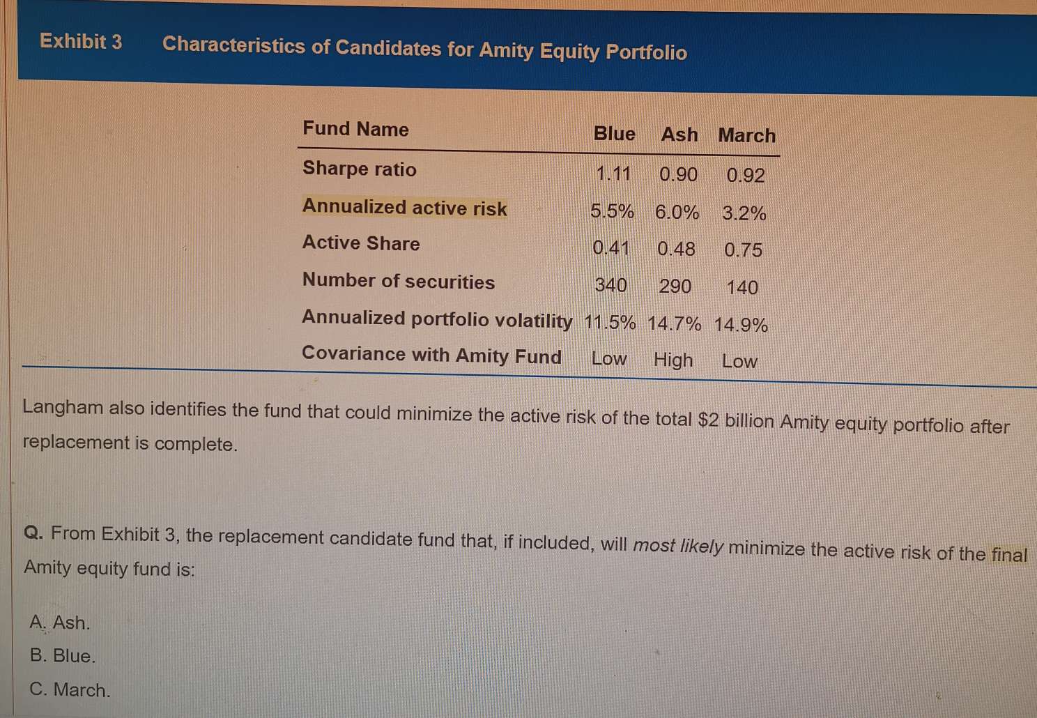 题目中问的active risk 后面有个final 和表格中间的annualized active risk有什么区别呢?