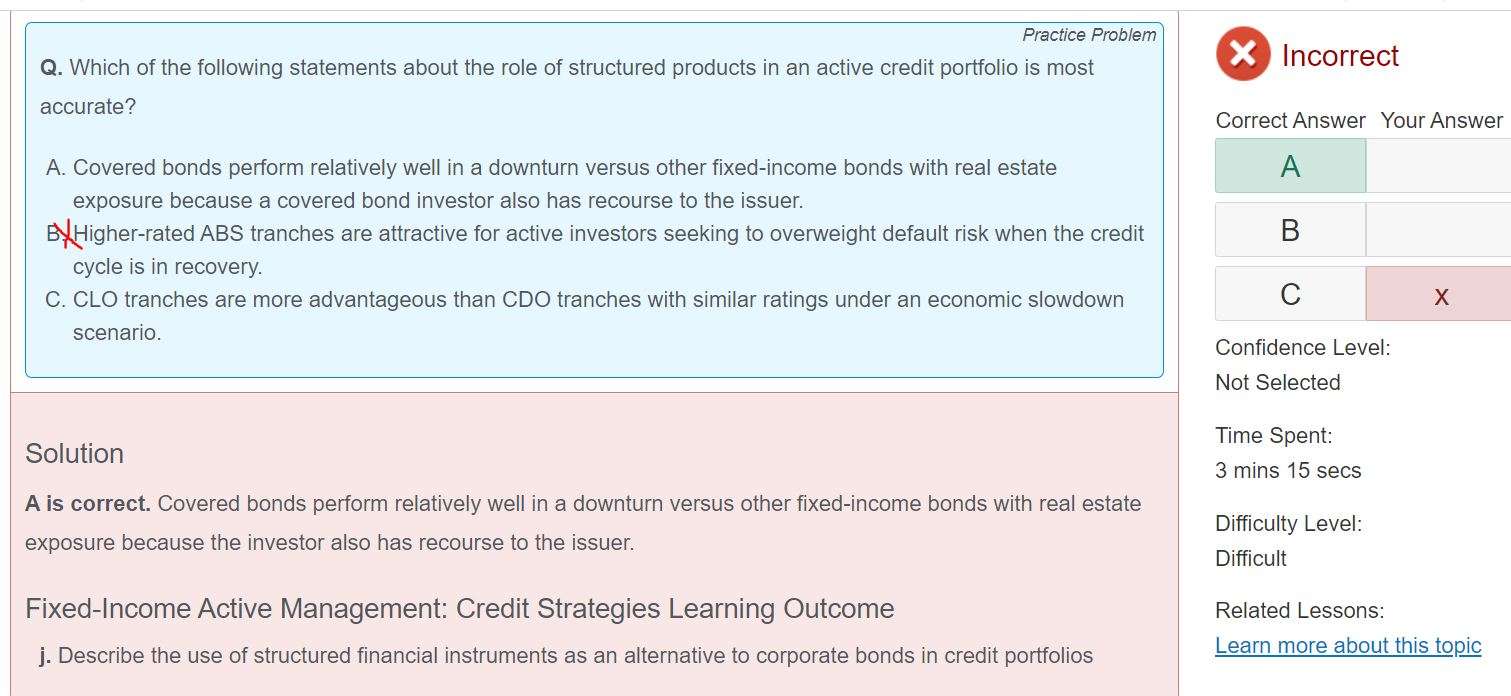 老师,你好,原版书reading 14的example32的解答部分,其中关于rating A 的excess spread是不是也错误的?应该是用1.4%+(-5.5*(-1.26%-1.4%))-0.1%=2.18%?另外,请问下expected loss 为何是0.9%,题目中好像并未有说明expected loss 有改变?