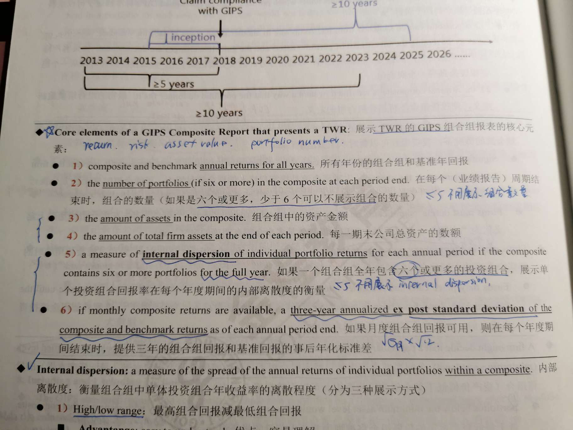 老师,GIPS这里一个写说TWR规定每个月至少计算一次return,但展示TWR时(第一项)又写说是年回报(不应该是月度?)两者矛盾?怎么理解