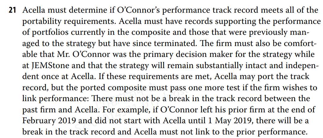 老师,关于performance link, 冲刺笔记里头讲的是将新旧公司的业绩link在一起的要求,而原版书reading 26 Q21 讲的是基金经理去另一家公司任职link performance, 这两个的情况记忆条件都是一样的吗?