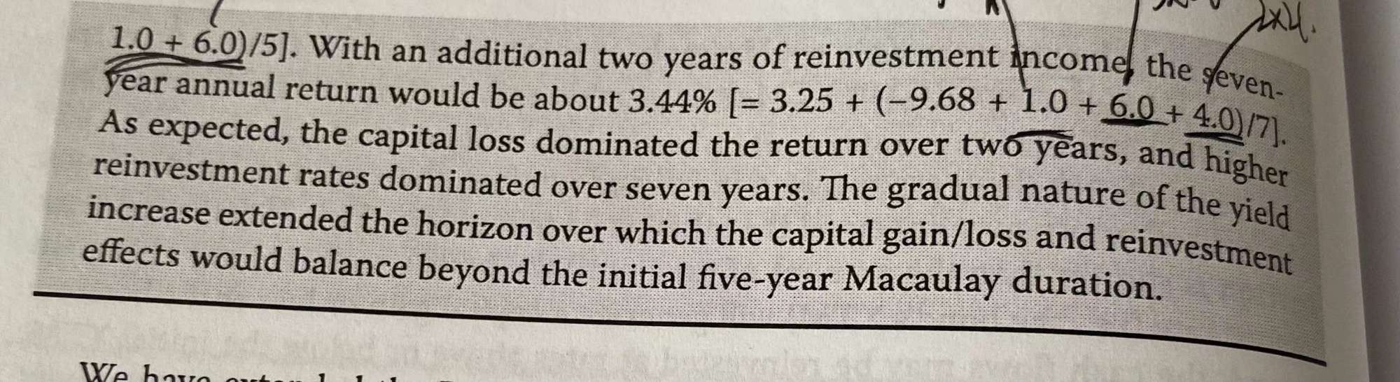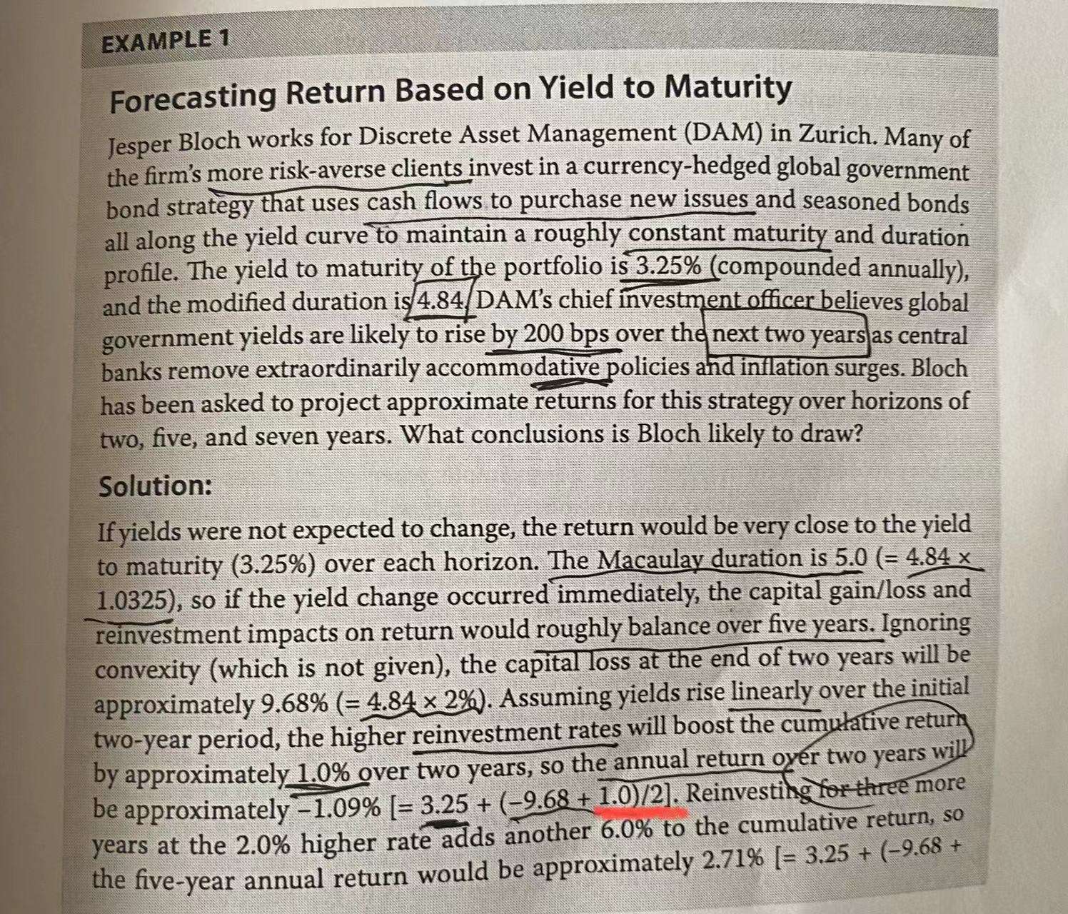 Reading 4, P167,第一道例题,这道题,再投资收益的计算,2年利率上升了2%,投资两年的话都是和期初比,不是应该(1%+2%)吗?年化就是(1%+2% )/2吗? 看后面,投资五年的话后面三年,就是用的每年比年初增长2%,所以三年就是增长6%