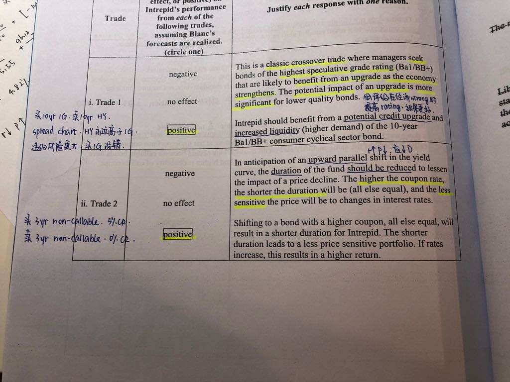 已回答老师好,固收2015真题 C, trade 2,买入5% coupon rate的债券,卖出一个零息债券,不是增加了duration吗?收5%支0%,可是答案解析的效果是降duration,没太明白