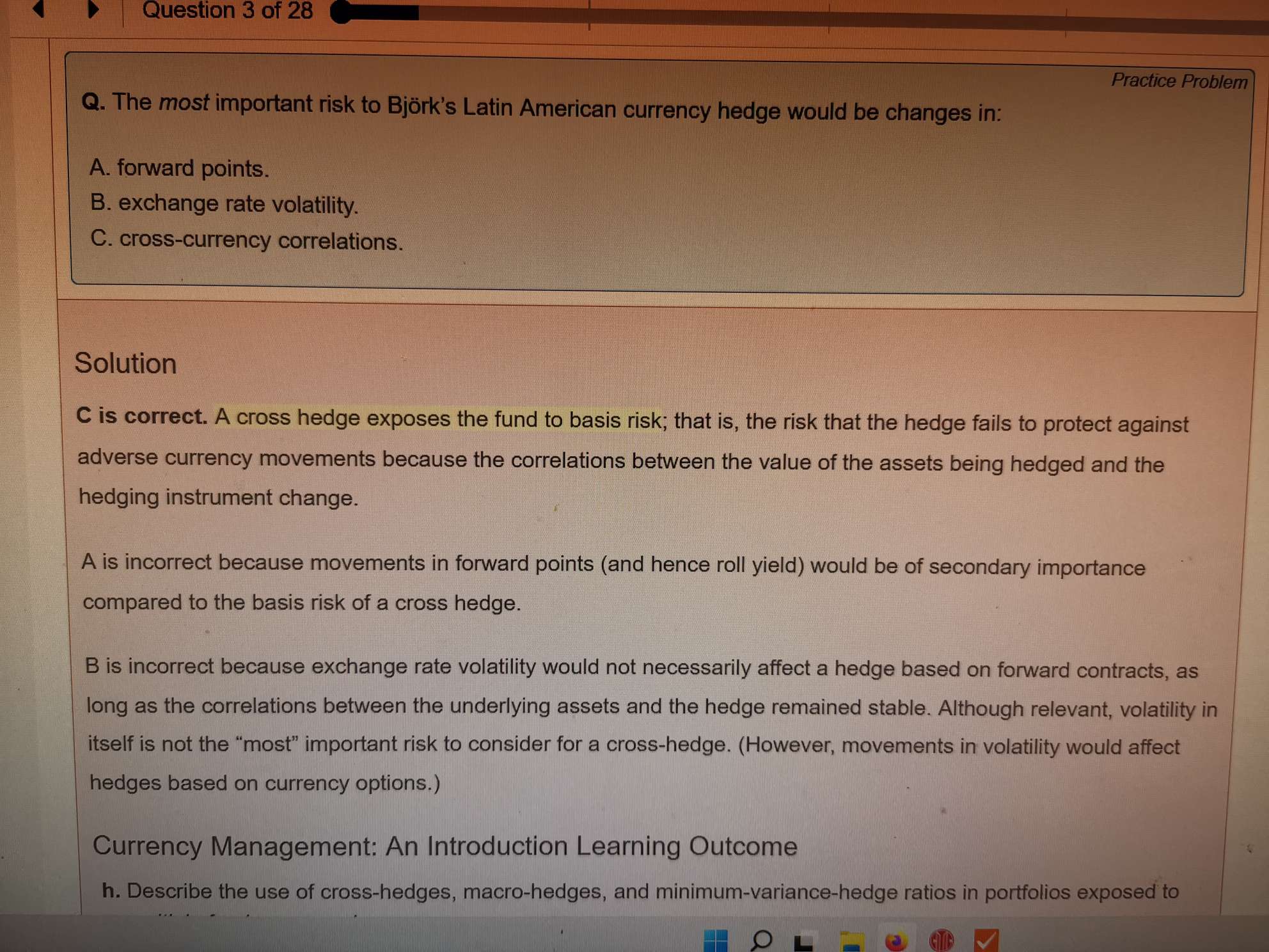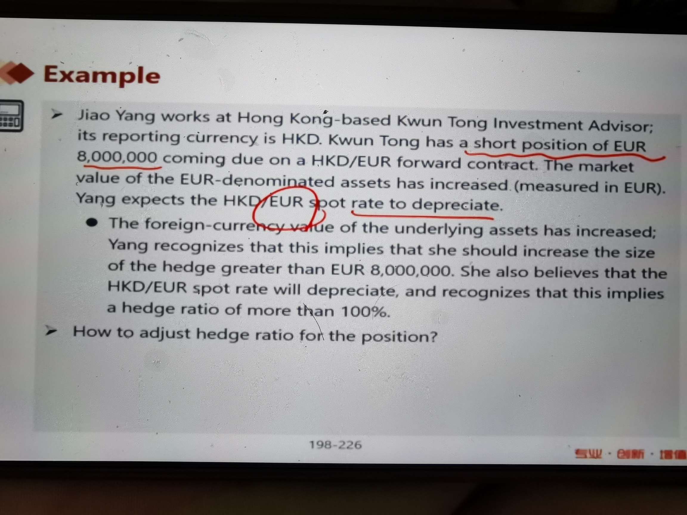 这个题这么分析是否对?这个公司持有欧元资产,担心欧元价格下跌,所以short 欧元,现在欧元资产上涨,他要short更多的forward来平衡。也就是dynamic hedging。如果hedge ratio想超过100% 则需要short更多的欧元forward。这样理解对吗 他现有的资产是欧元asset