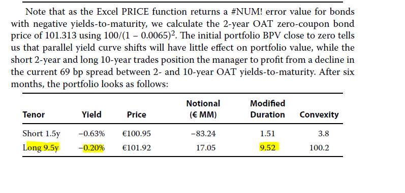 L3原版书P27-401 最下面的表格,问一个问题。 zero coupon bond的macaulay duration等于term,且macaulay duration / (1- yield) = modified duration。拿long 9.5y举例,modified duration = (9.5)/ [ 1- (-0.002) ] = 9.48, 并不是9.52。哪里错了?