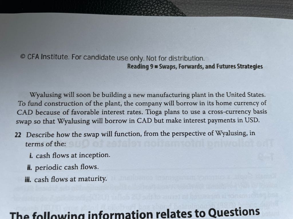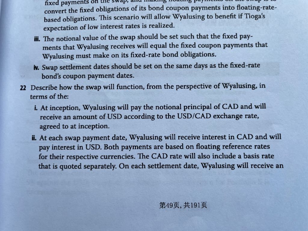 课后题22题,假设前提就是固定换固定嘛?没有理解swap payment date和settlement date的cash flow有什么区别?对于期间的现金流,讲义提完各付各的interest也就结束了,二级好像也没用着重讲过货币互换的settlement…所以不是很理解