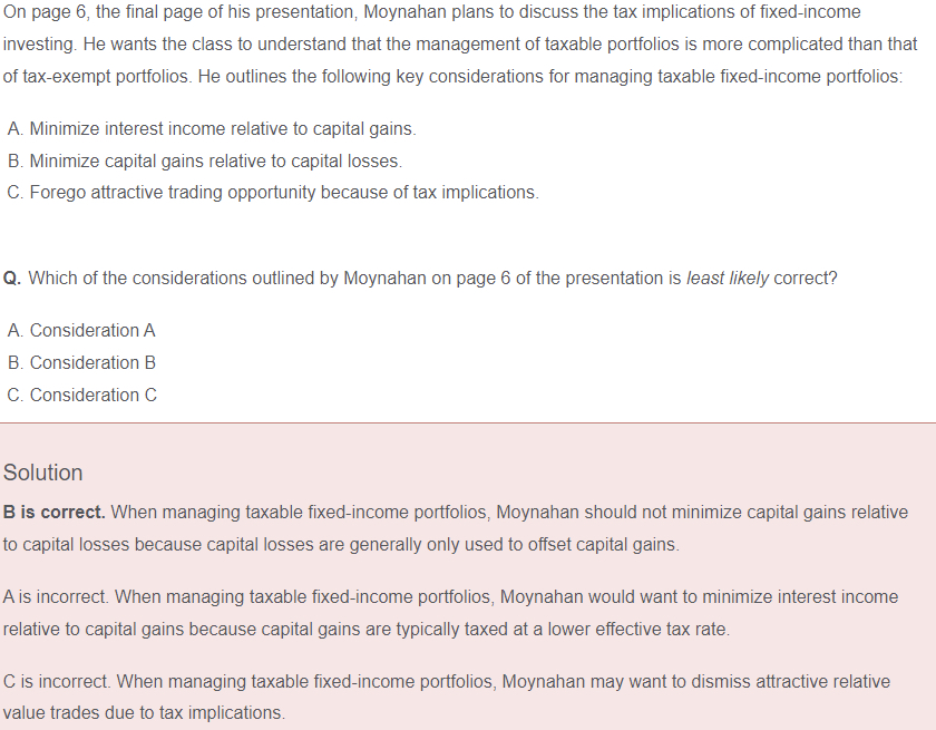 老师,你好,原版书reading 12的example 4中的解析的第三点,有点不明白。如果按照题目中表述的用的是laddered portfolio,那么应该是yield curve risk 更大。但是解析中表述的会有更好的benefit of diversification应该如何理解?
