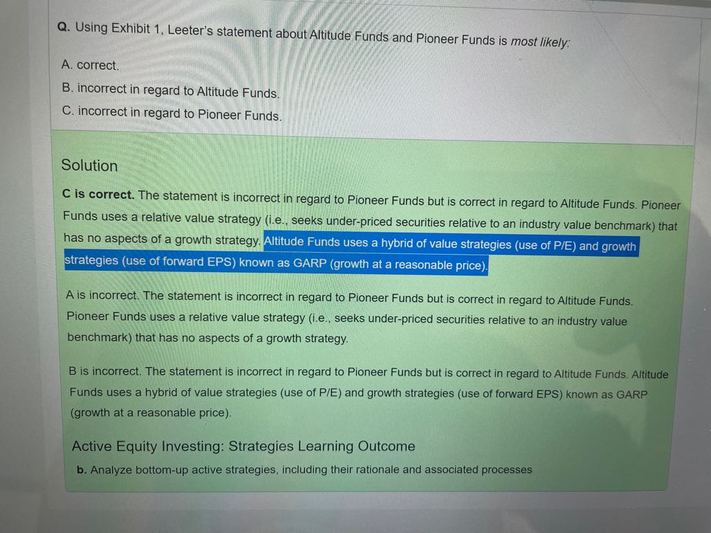 请问答案为什么说A基金用到了GARP?