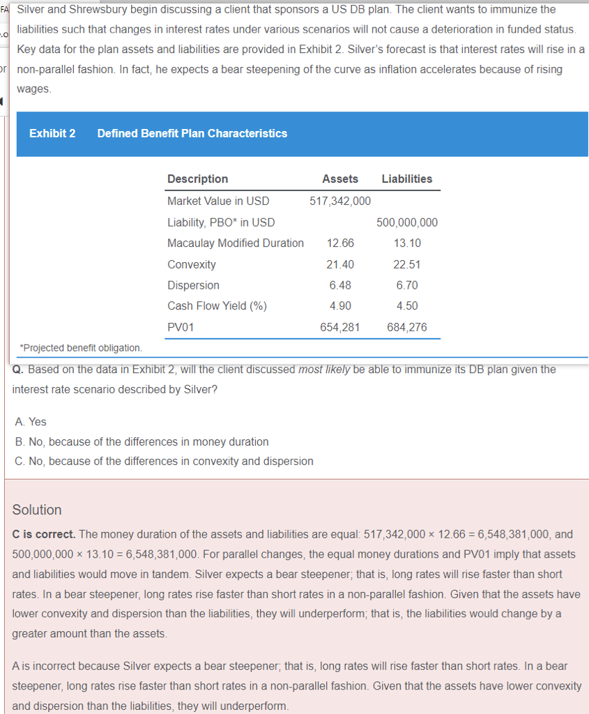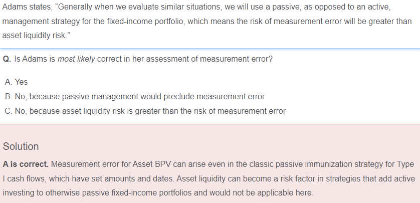 老师你好,请问下,答案里好像美元久期计算错了吧,多负债免疫不是最本质看的是资产和负债的bpv吗 像这里pv01就不一样