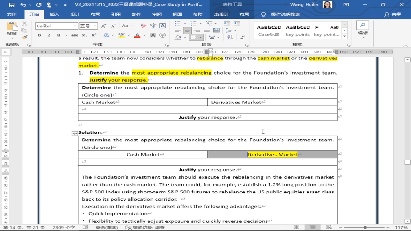 R10课后题34题,原来问过,给的答案如下: 同学你好,这个题协会出错了。他的外币是USD,本币是EUR,汇率给的是USD/EUR,因此要把USD敞口转换成EUR应该是除以汇率,而不是乘以汇率。他有2.5M的USD敞口,通过short一个月的远期或期货来对冲。在一个月之后,远期快到期的时间,他要进行转仓,因此他的做法是long USD现货,再short一个月的USD forward。 因此第一步,他一个月前签的short 2.5 USD forward现在要变成,long USD,而long USD就是short EUR,因此USD/EUR的汇率形式,应该使用便宜的EUR价格,所以是除以0.8875,得到2.5M USD/0.8875 USD/EUR=2816901EUR (支出EUR,买USD,因此EUR是现金流出) 然后再short,一个月的远期卖USD,由于现在USD的敞口是2.65M,因此要short 2.65M的USD,未来卖USD,就是未来买EUR,因此要用贵的价格,再加上forward points,因此用0.8876+25bps=0.8901 USD/EUR的远期汇率。 因此一个月后可以卖出2.65M USD获得2.65M USD/0.8901 USD/EUR=2977194 EUR (一个月后卖出USD,获得EUR,因此是EUR流入) 这样就可以计算EUR角度的净现金流了,在一月前支出2816901EUR,在一个月后流入2977194 EUR,因此收减支,净现金流为:160293 EUR。 我现在有一点不明白,一个月前是short forward 卖USD,现在要close掉,买usd 支付eur ,现金流是支出的,这个我理解,那在开一个新的forward ,在未来的一个月后以一个汇率卖出usd ,那么此时并没有现金的流入流出,而是未来以某一价格卖出usd ,为什么现在有个流入呢,有点不理解