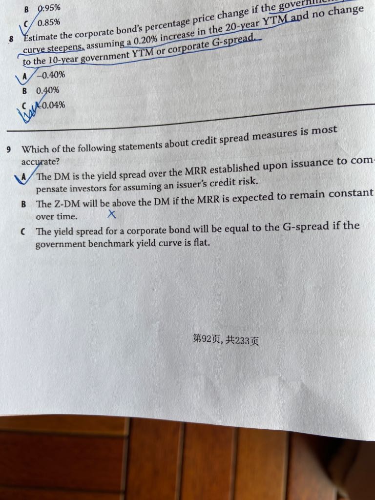 已解决固收2,原版书 80页,题目中要求计算rolldown return 但是答案里面包含了coupon income;我认为coupon income 不应该包含在rolldown return里面。