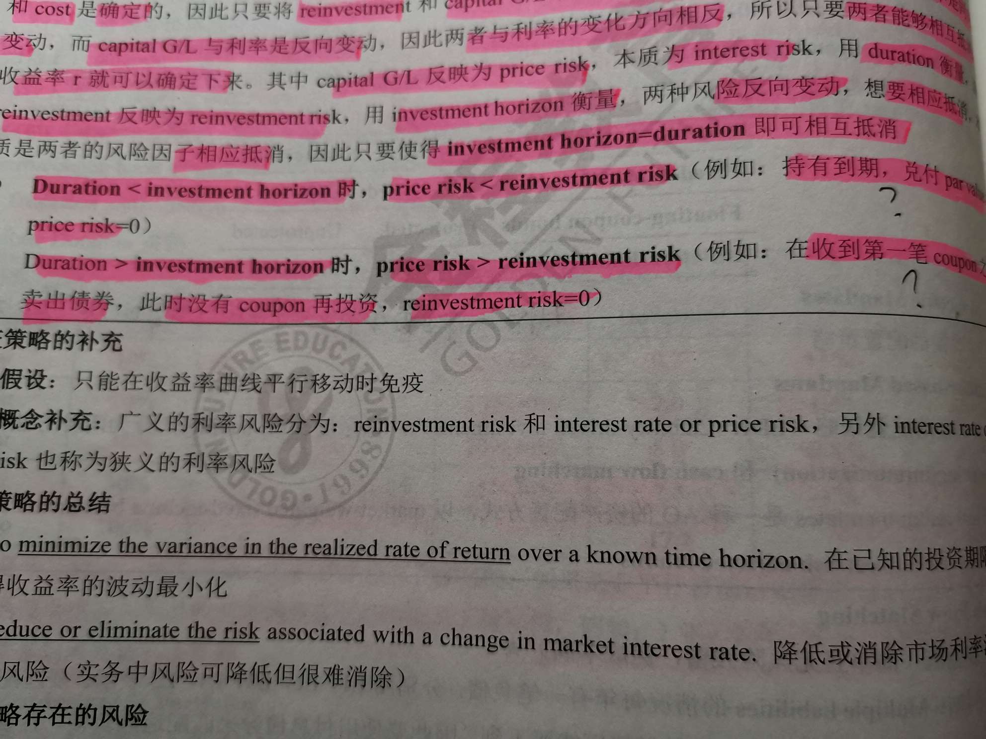 价格风险小于再投资风险,要持有到期,是因为持有到期能拿到更多的再投资收益对吗?同理,如果价格风险大于再投资风险,则应该收到第一笔coupon前卖掉,因为此时价格收益多于未来再投资收益是吗?这样理解对吗?