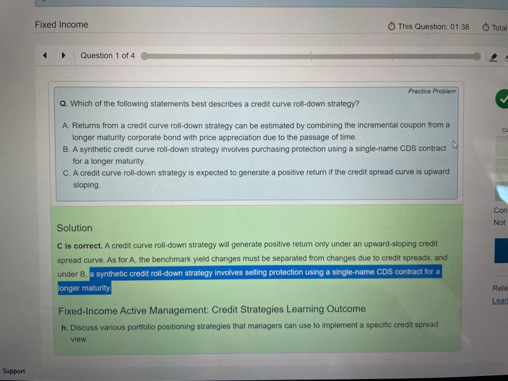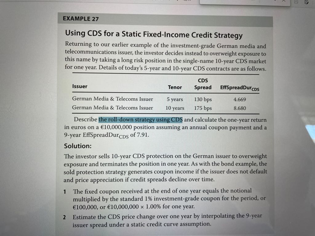 老师,这个标蓝的解释与R14原版书例题27不太一致。能否给讲讲Synthetic roll-down strategy?
