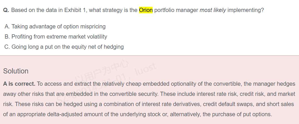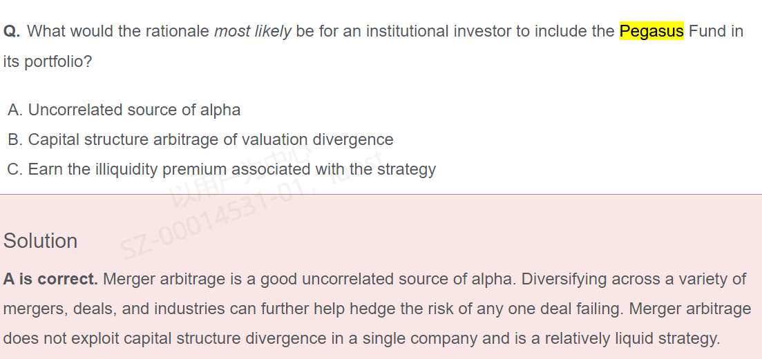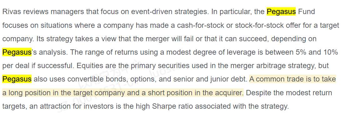 另类官网题,Raritan Case Scenario, 为什么选项B不对呢?Capital structure arbitrage involves taking long and short positions in the debt and equity of individual companies to extract misvaluations。—— A common trade is to take a long position in the target company and a short position in the acquirer 这两个不就对应了吗?