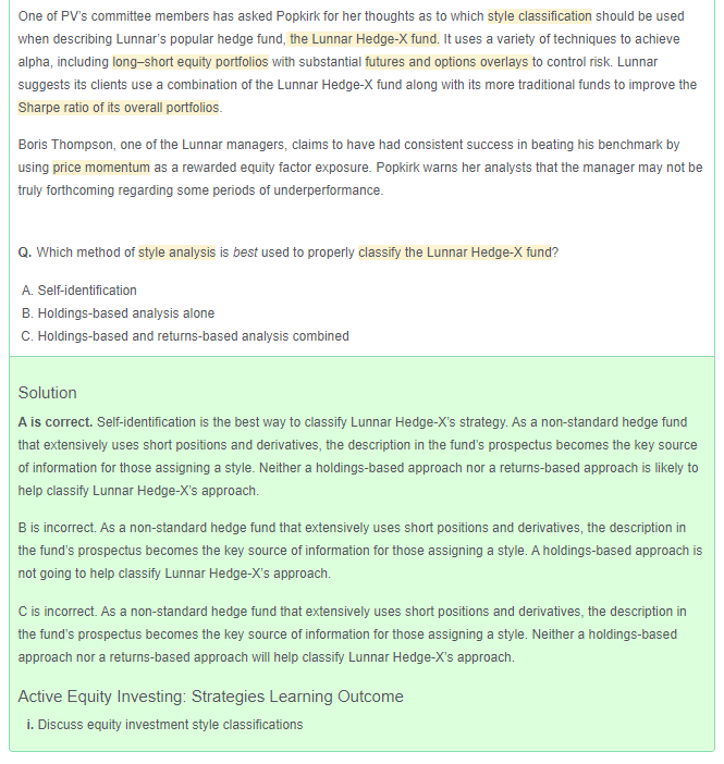 官网equity 习题,Monica Popkirk Case中最后一题,讲解的时候说因为有衍生品所以holding based不适用,return based也不适用? 请教老师,讲义上好像只说了holding based不适用衍生品为什么衍生品会导致return based不适用呢