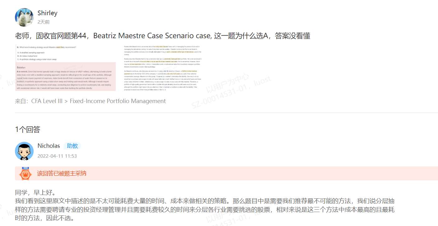 包含CFA三级传统在线课程相关提问答疑;