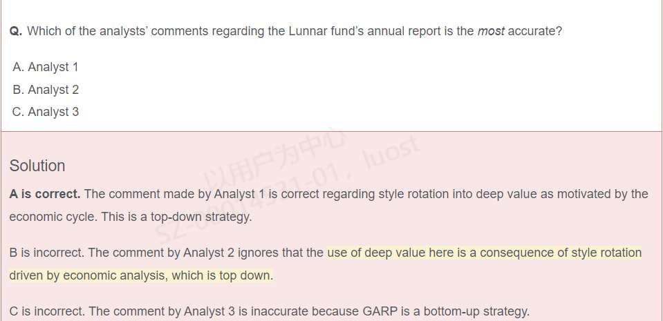 Equity官网题,Monica Popkirk Case Scenario case, 这一题哪里看出来是style rotation呢?题目里说的也是在rotate companies, 那不是基于securities 的 bottom up吗?