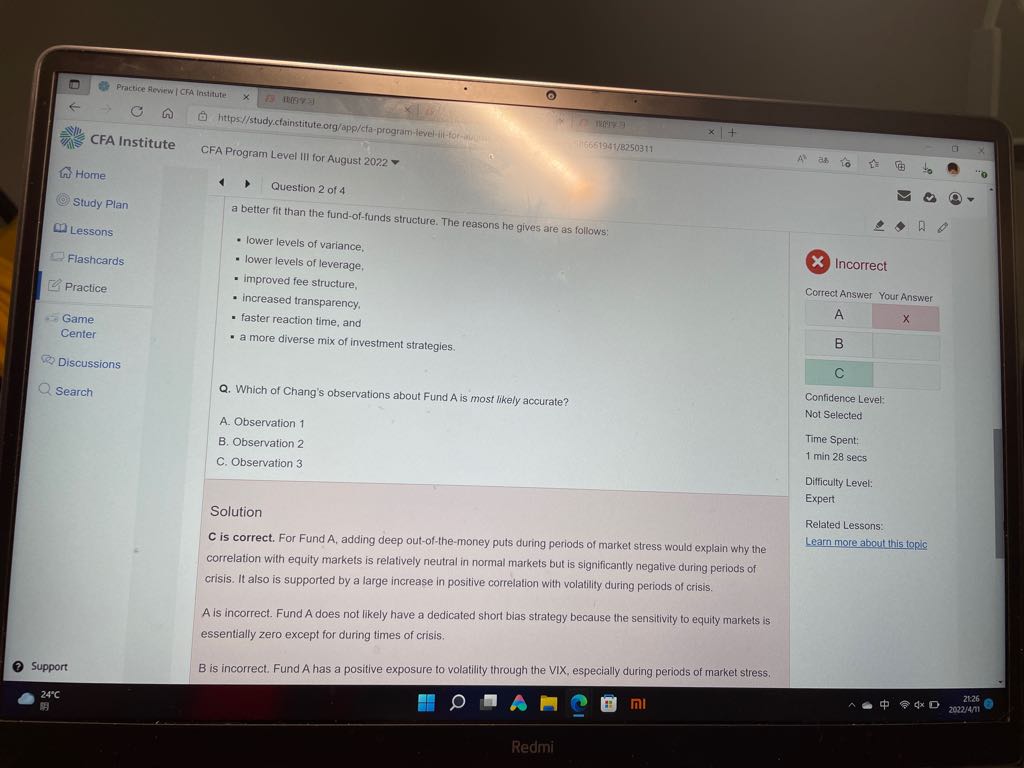 - 第二题答案上说的是smaller difference,选项c是wider dispersion 是不是题出错了