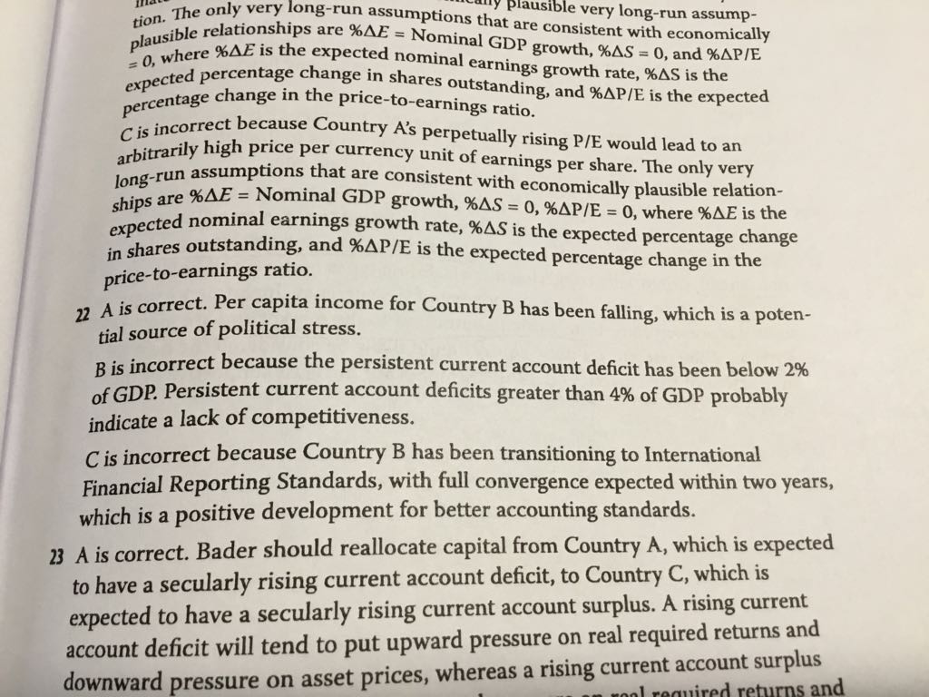 已回答CME原版书课后习题R4第22题,Irene老师讲解的时候分析第二句话说,因为current account赤字,所以竞争力高,风险低。(见图片2) 请教老师,这一块不太理解,赤字的话表示出口大于进口,证明本国竞争力大于外国,那应该是风险低吧? 这道题目第二句话之所以不是增加风险,我理解是因为它的赤字程度低于GDP所以不会增加风险吧?