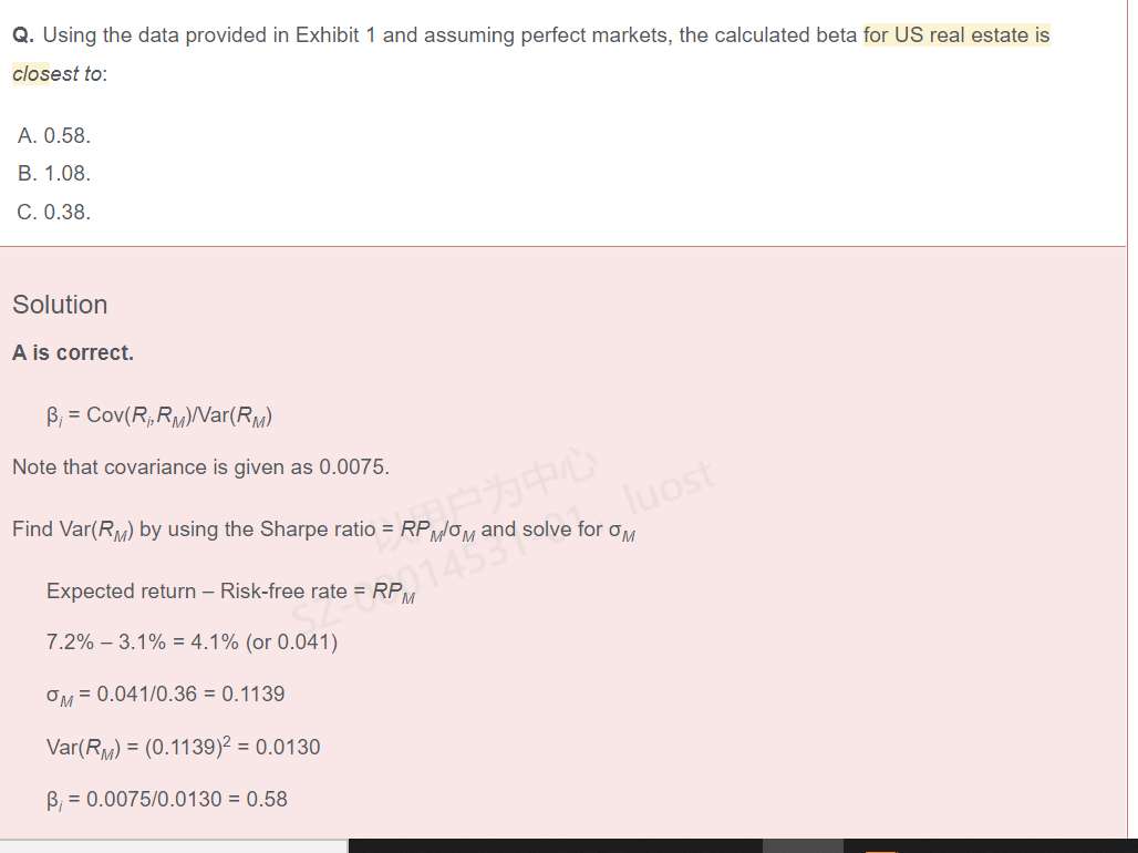 请问官网题Tina Swan case的这道题,为什么the ratio of the excess return to the marginal contribution to total risk等于sharpe ratio?