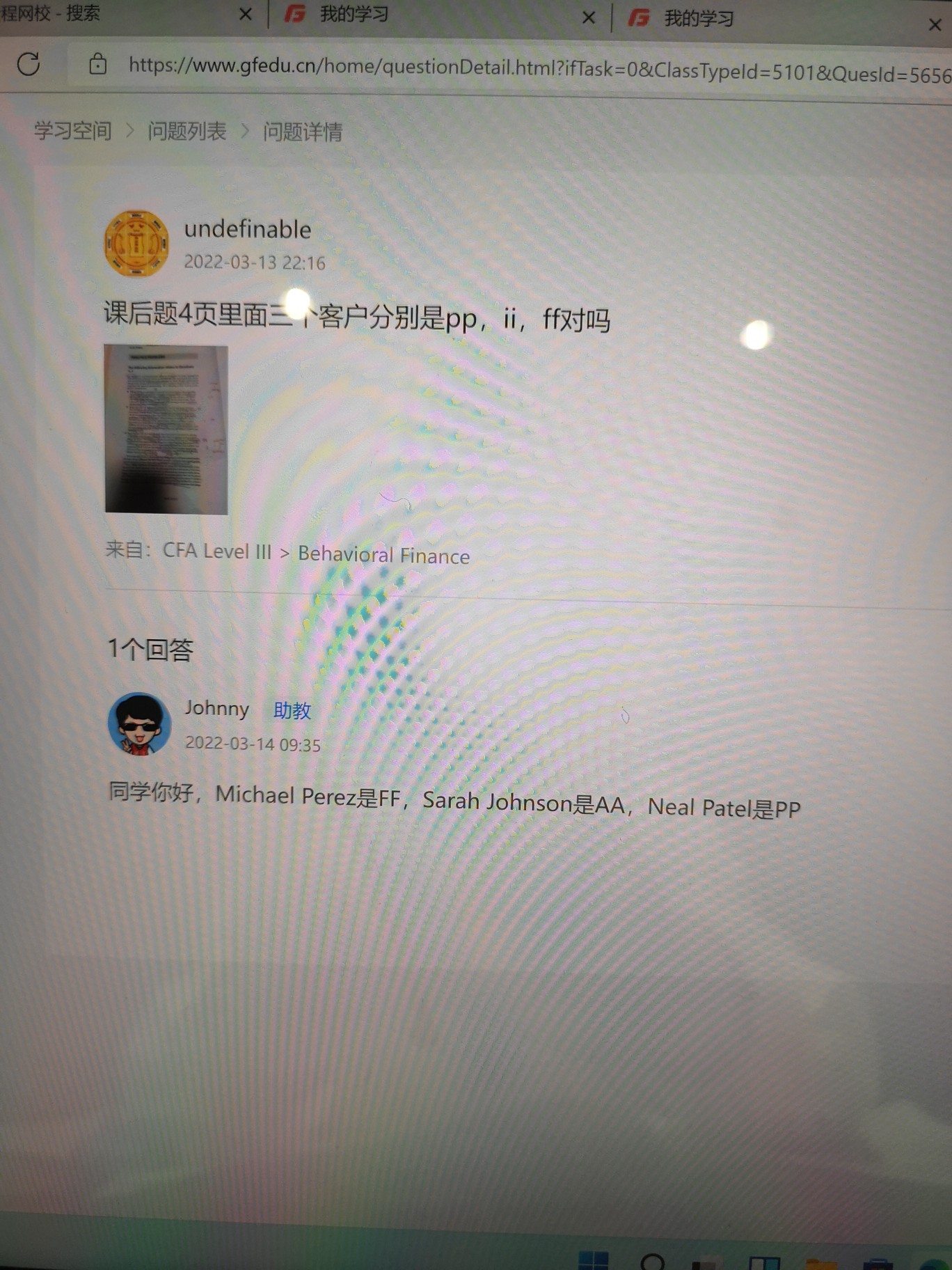 包含CFA三级传统在线课程相关提问答疑;
