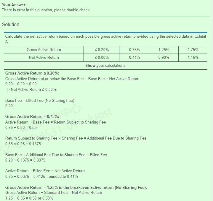 老师,这一题有问题吧?选项A compares the return to a benchmark, 明明就不对啊?答案解析也说不对,为啥不选A T-T