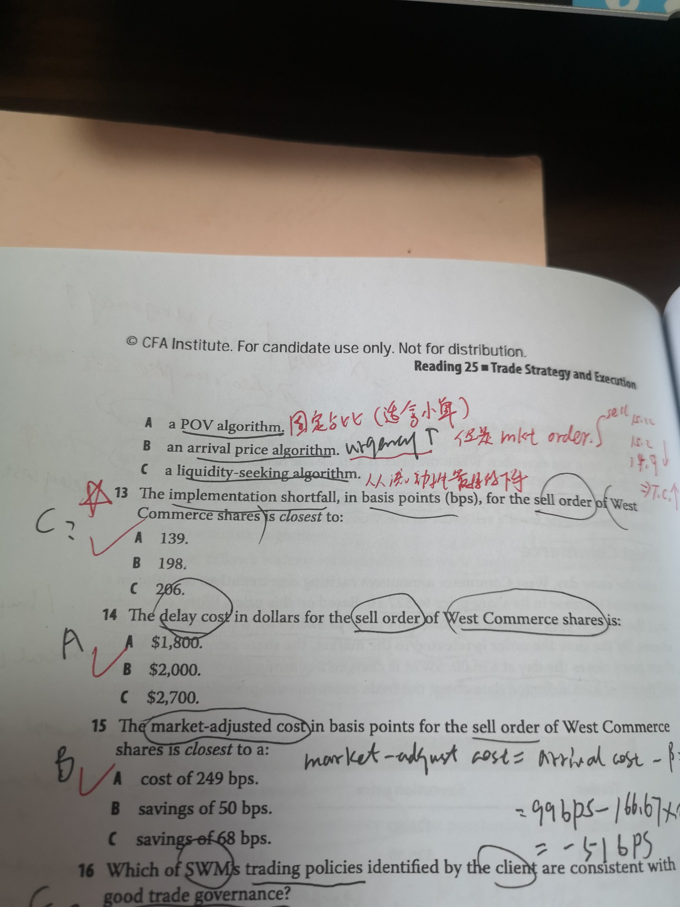 怎么分别理解price benchmark ,trading strategy和trade algorithm?第10和11题都是考虑的arrive price,12题又选liquidity seeking,有点懵