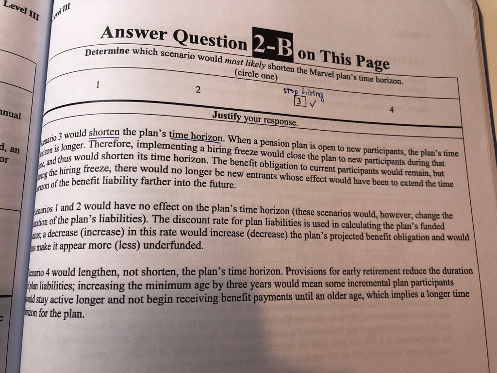 老师好,关于考试答题有个疑问,例如这一题,问哪种情景最可能降低time horizon,可是答案除了解释哪个能降低,也解释了其他三个不能降低的原因,在考试中类似的题目是否需要对每个情景加以说明?